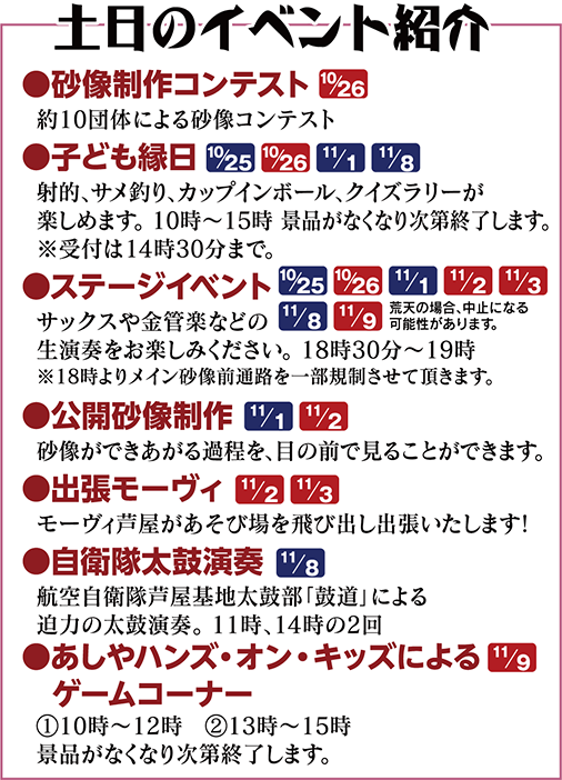 TEL093-223-3481 あしや砂像展実行委員会事務局(芦屋町観光協会)